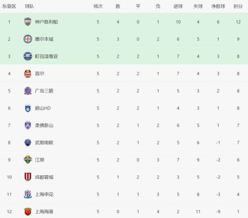 随着申花02,亚冠最新积分榜:中超3队连续2轮不胜,排倒数前三