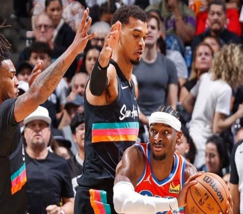 这个最华丽的泡沫被戳破的过程,要分两个部分说。第一部分:马刺三场胜利,赢法各不相同。第一场文班亚马统治第四节;第二场奇兵凯尔登约翰逊站出来,在文班亚马和福克斯身边不断发炮;第三场则是马刺后场三杰:福克斯+哈珀+卡斯尔轮流爆发,雷霆补了东墙漏西墙!马刺对待雷霆进攻策略很简单,第一是减少自己失误,不让雷霆抓反击机会。而阵地战中,马刺就放卡鲁索和多特两个空间累赘点,其他人突不进去,这两人又投不进去,阵地战雷霆哑火,只剩下罚球维持局面。而文班亚马的属性价值,在进攻端也很重要。